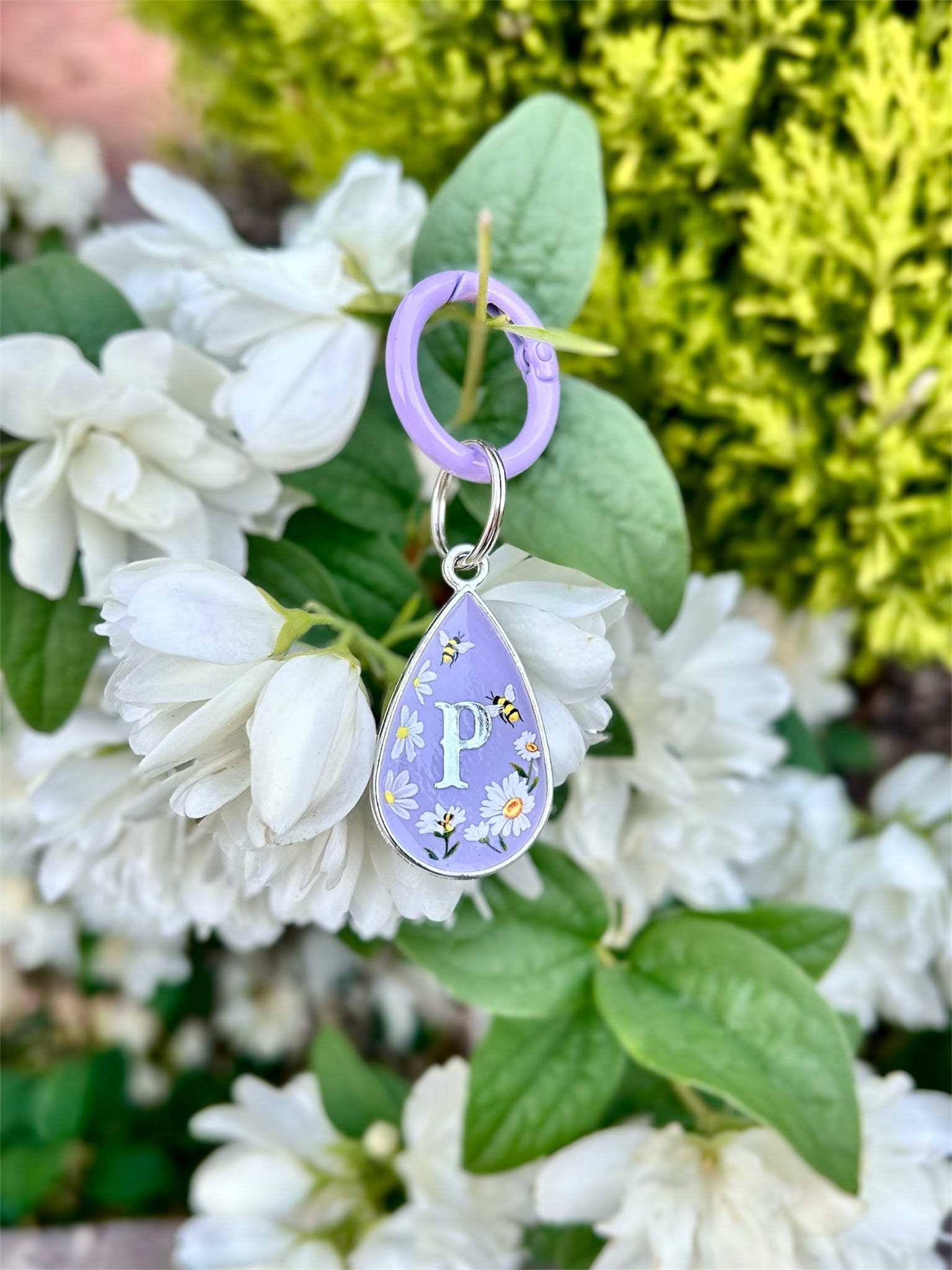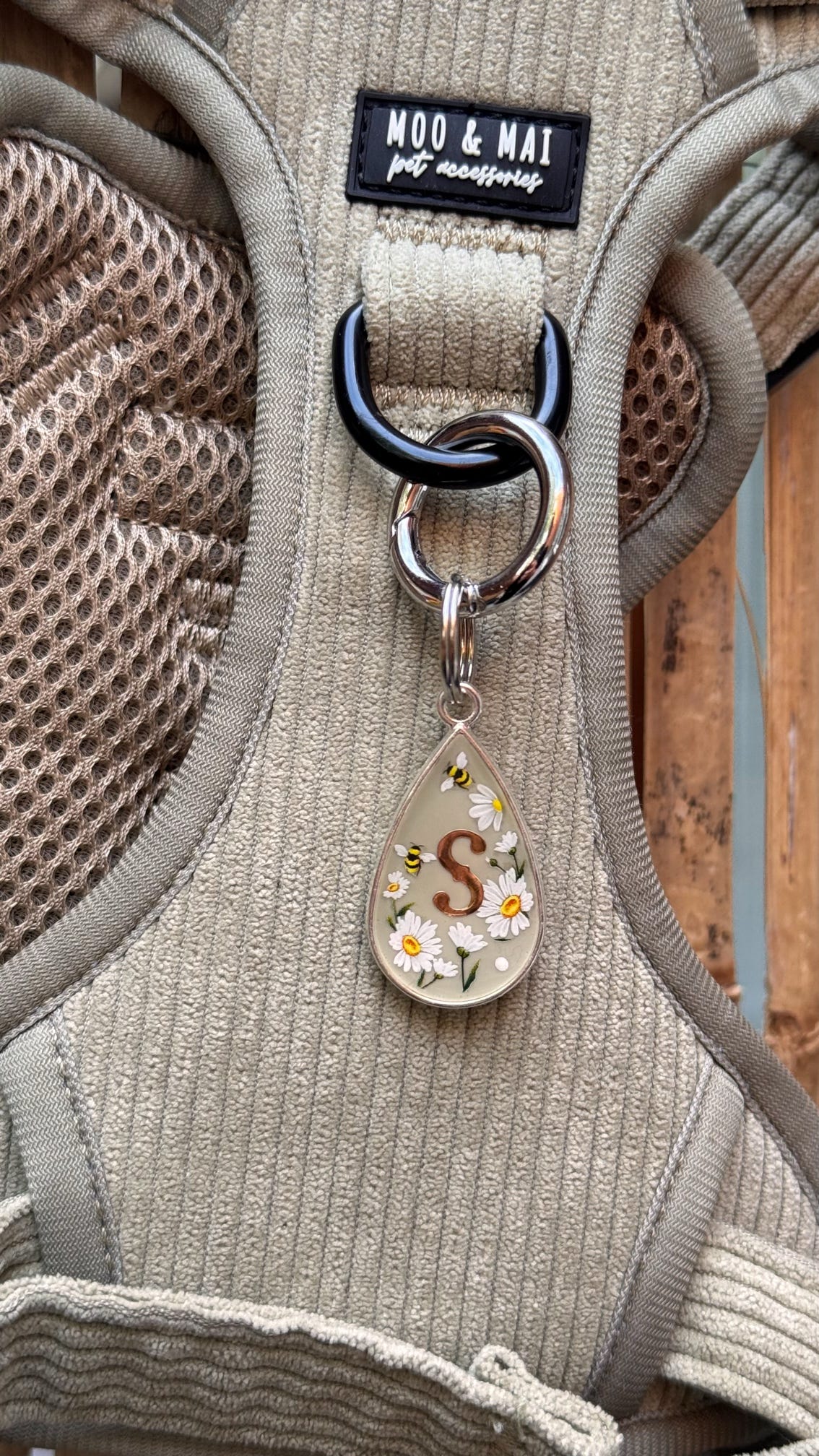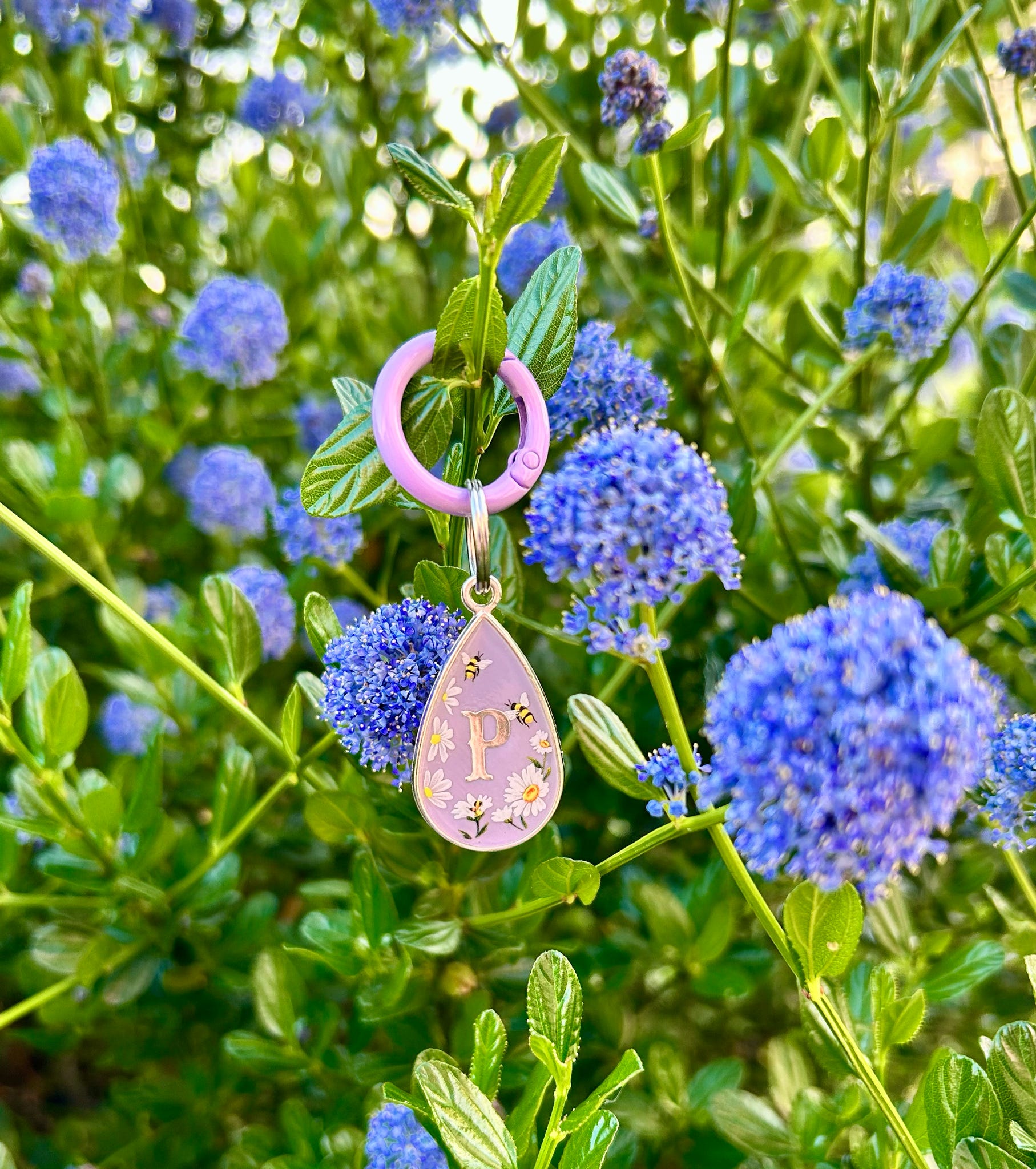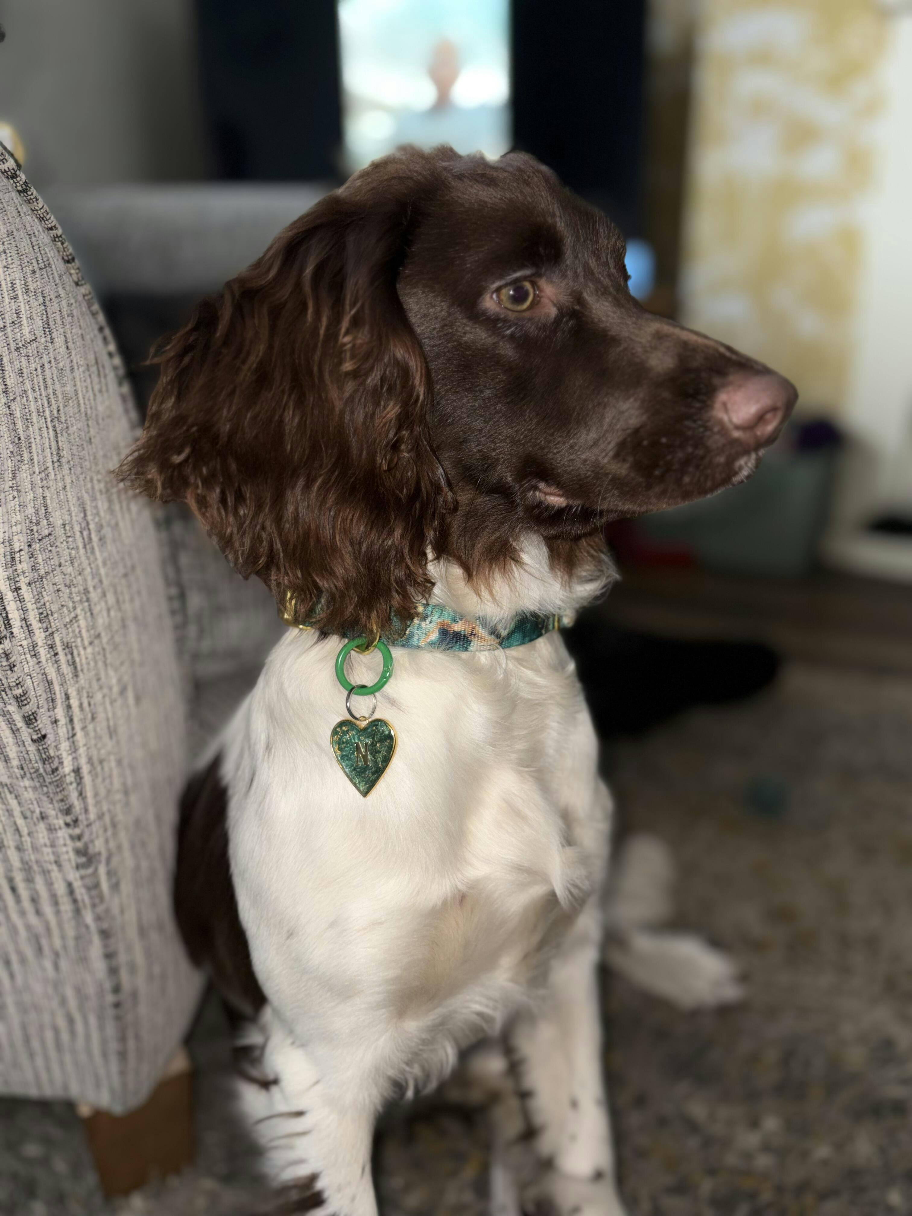 front of tag (pet initial)
