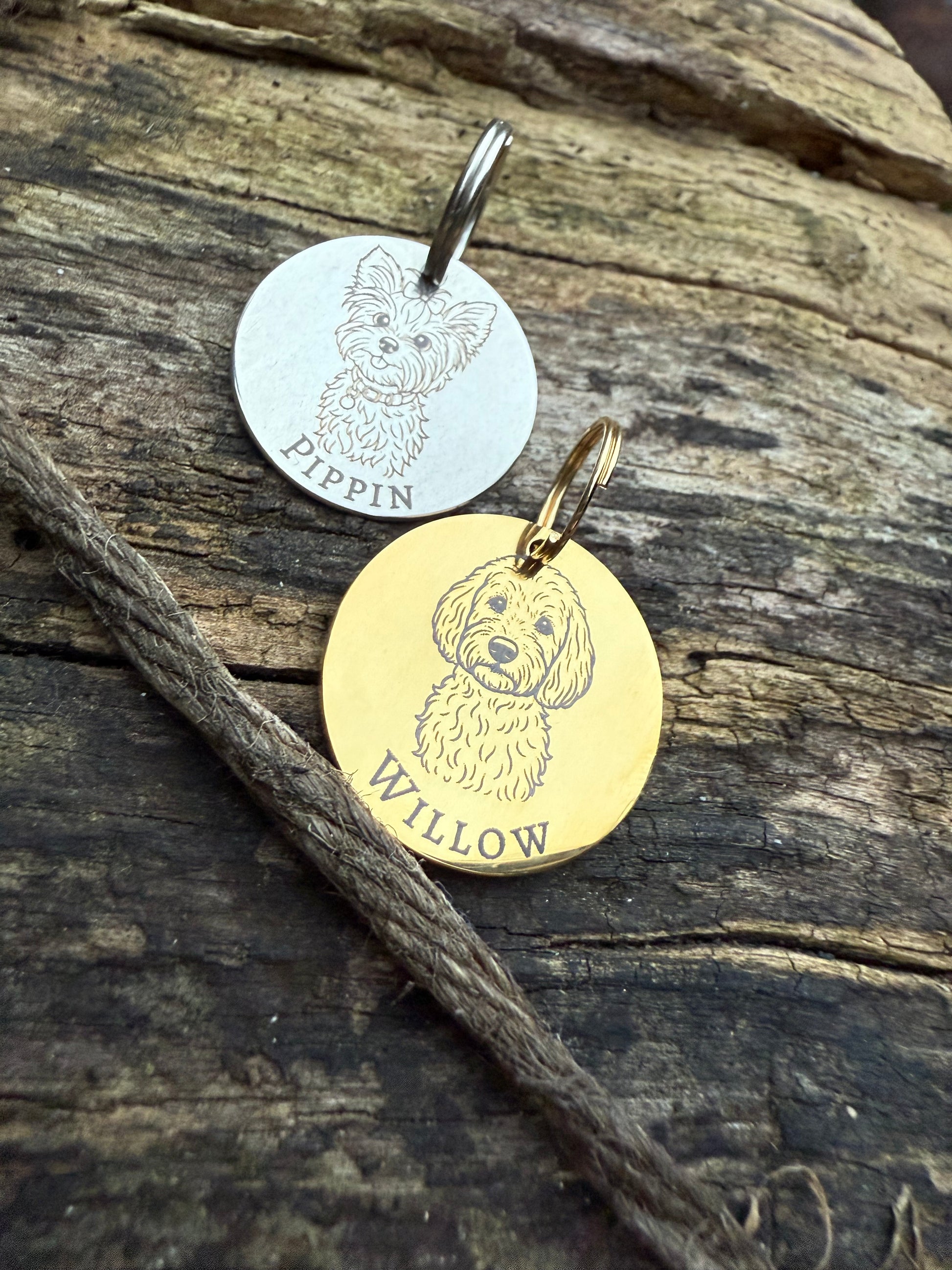 front of tag (pet initial, name, I’m chipped or nothing. If nothing please put Nothing in text box)
