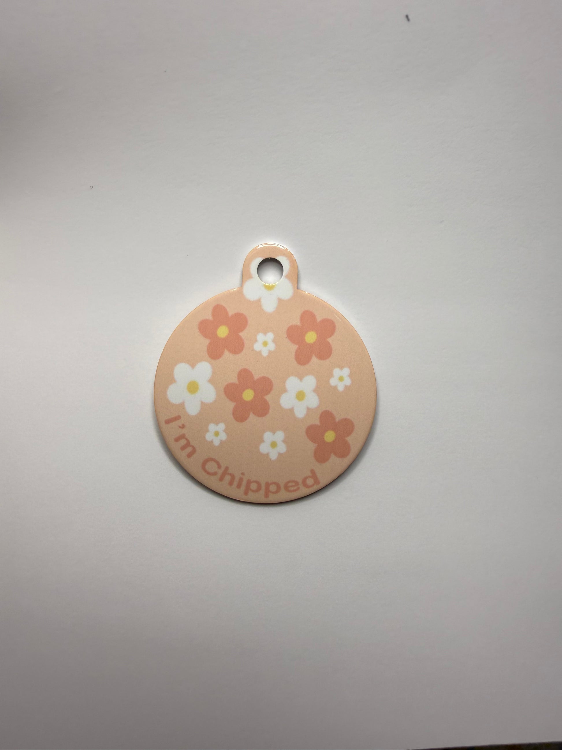 front of tag (pet name or I'm chipped)