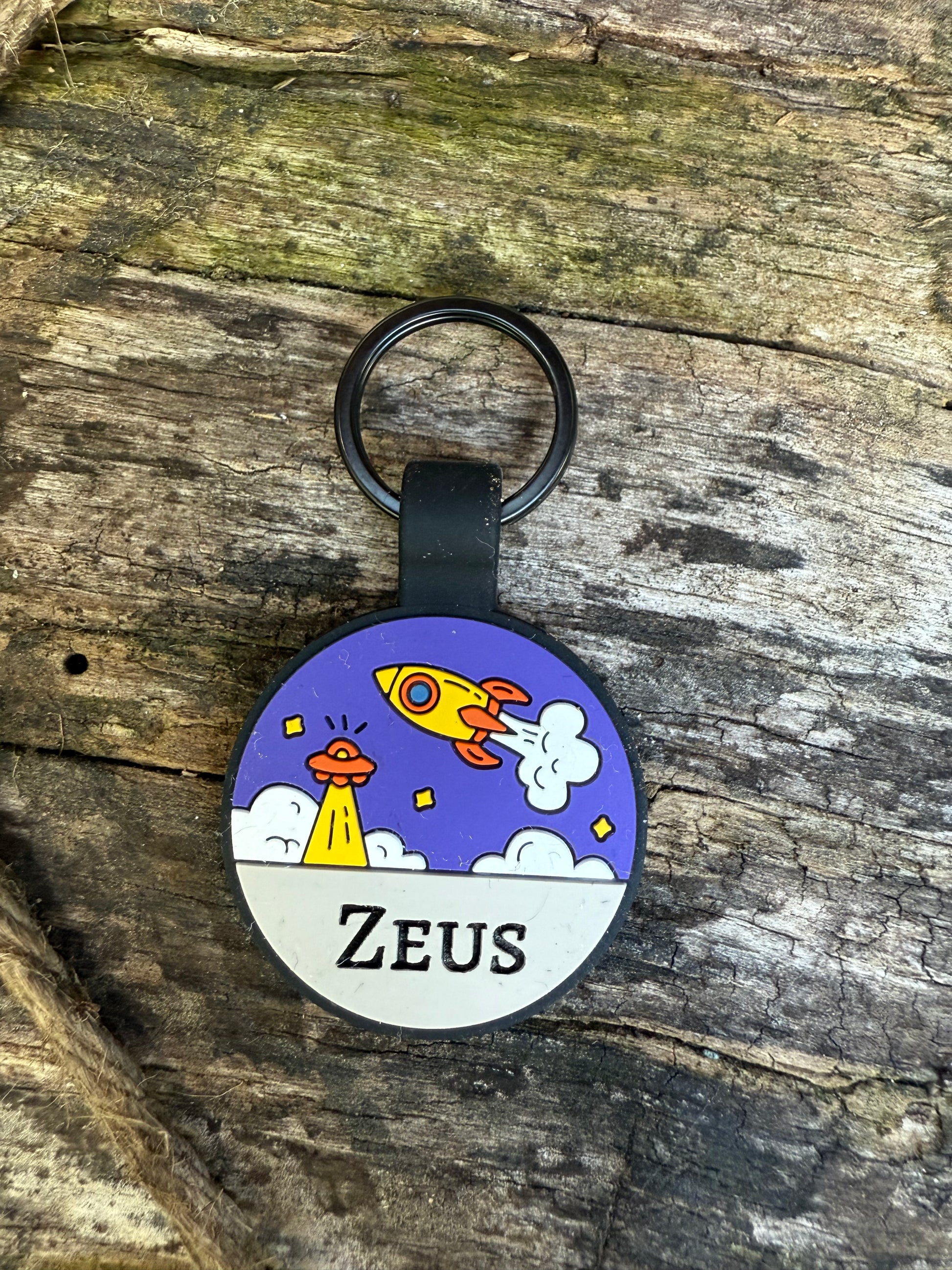 front of tag (pet initial)