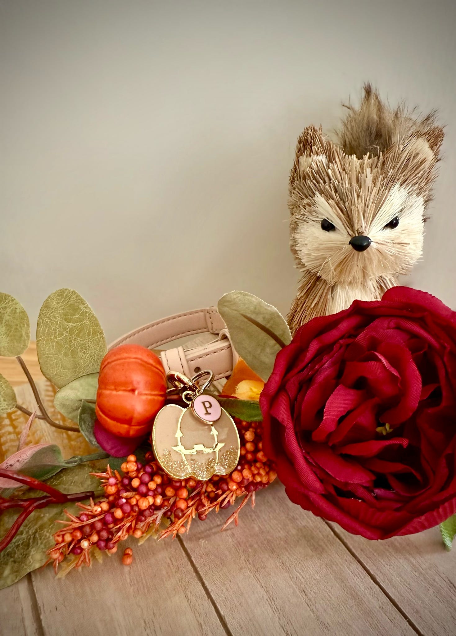 front of tag (pet initial)