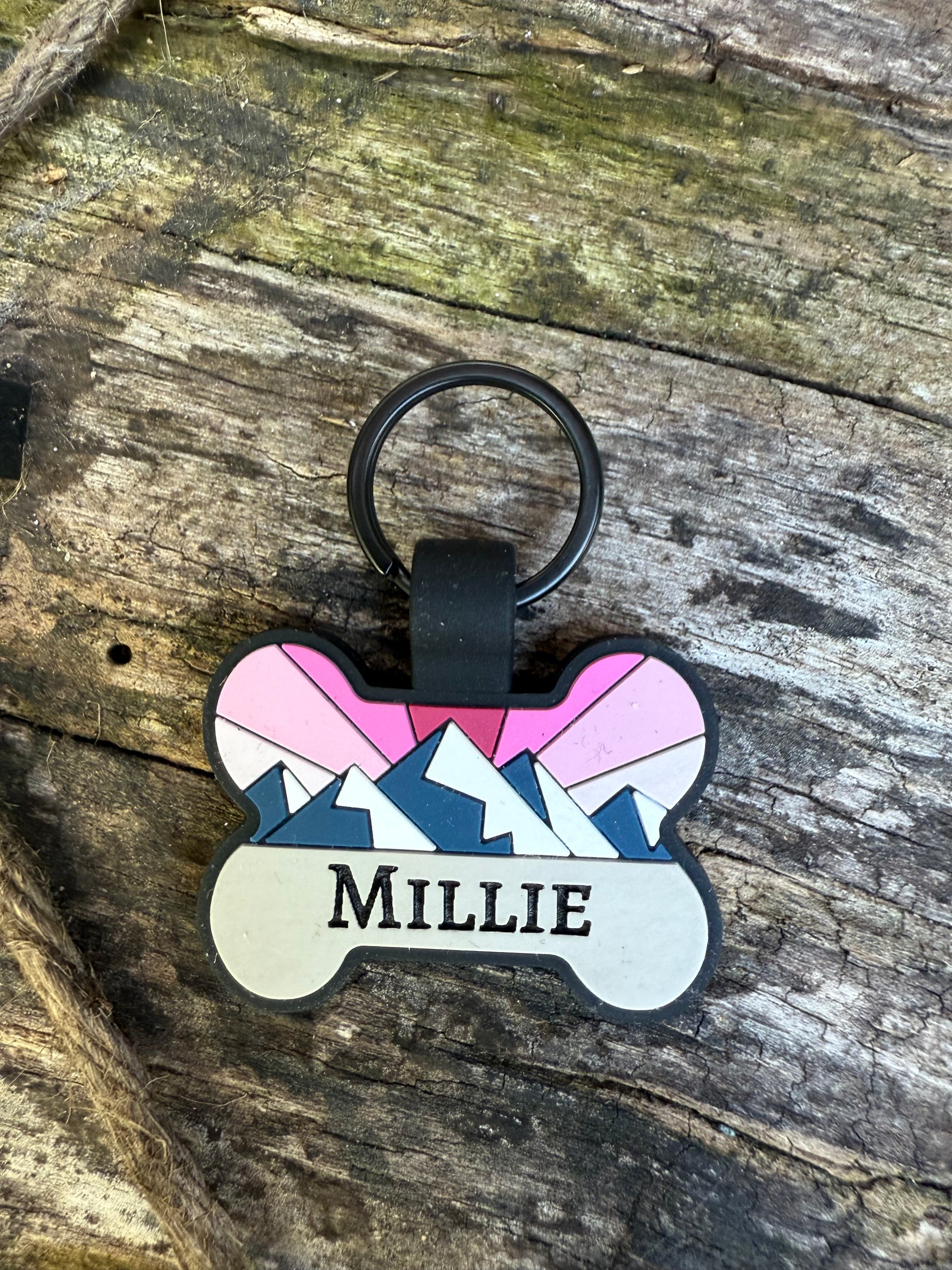 front of tag (pet initial)