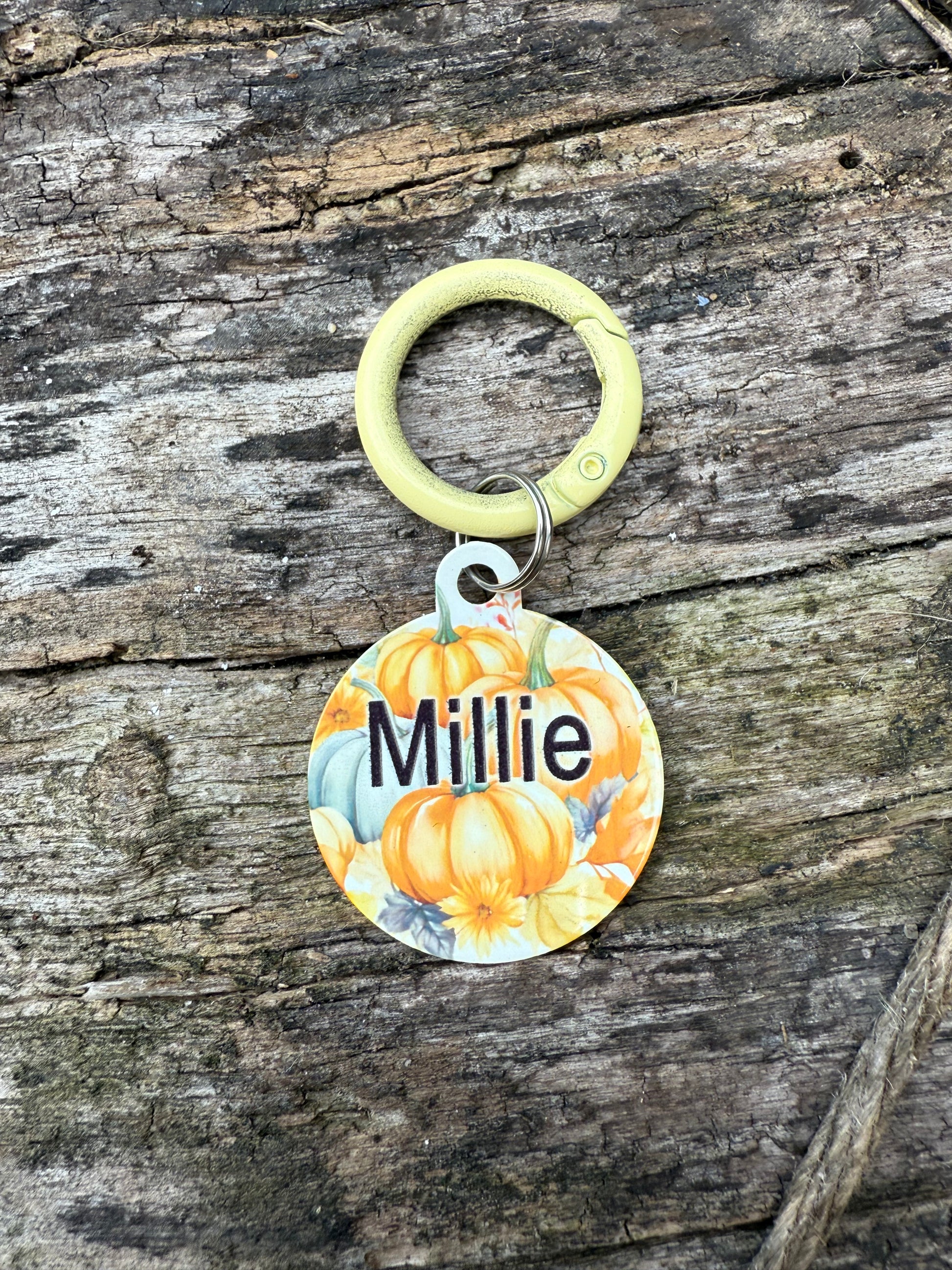 back of tag is your choice (e.g surname, house number, postcode, phone number)