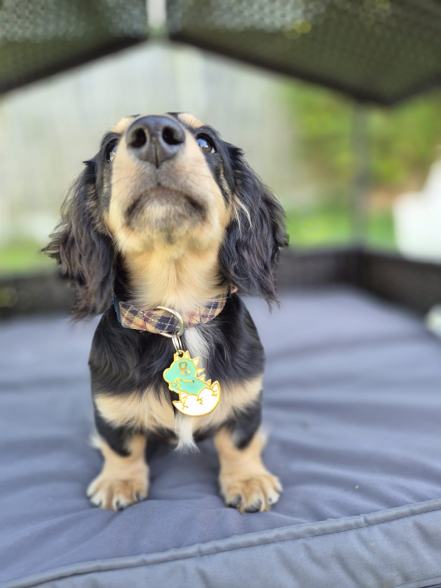 front of tag (pet initial)