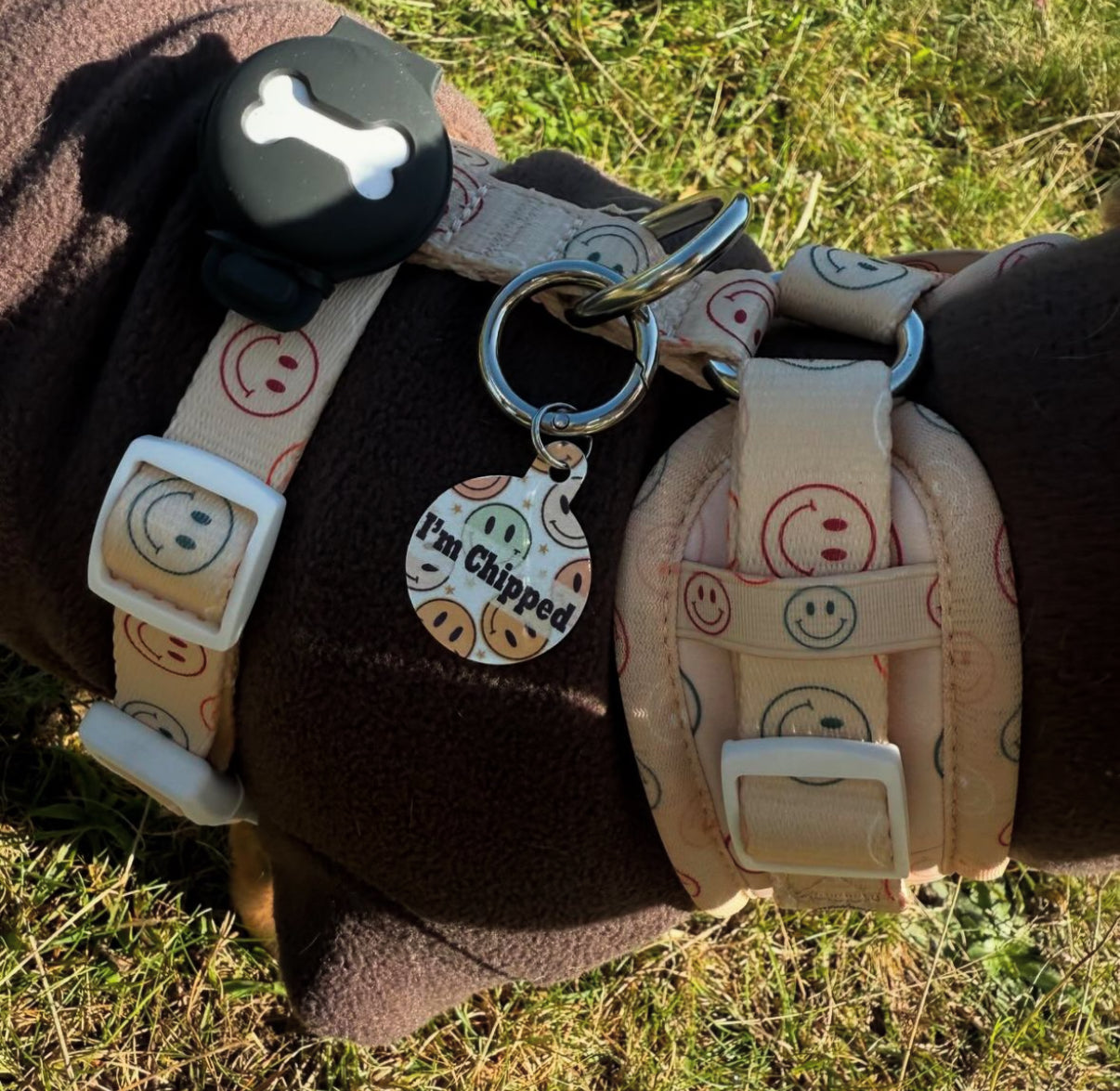 front of tag (pet name or I'm chipped)
