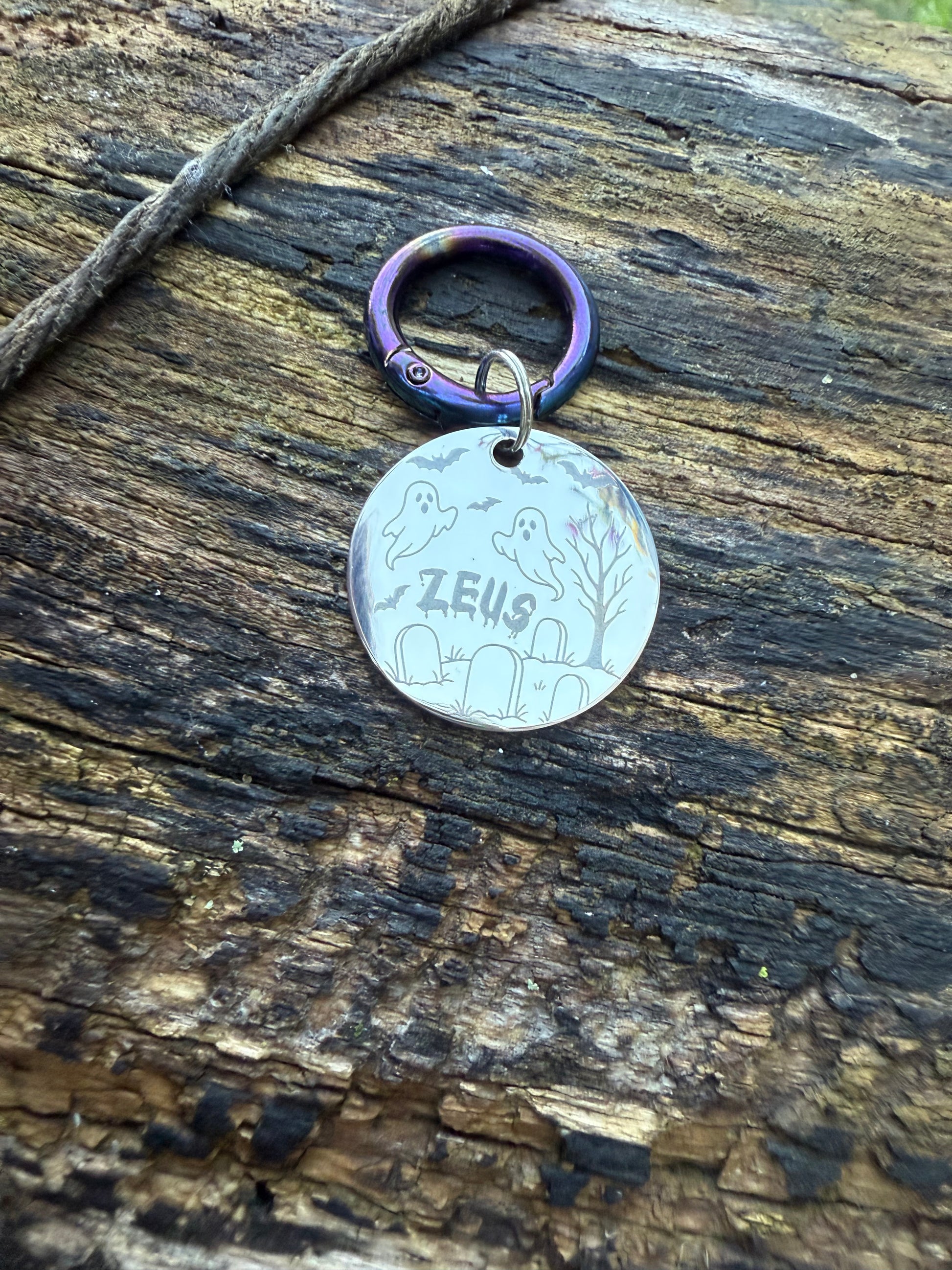 front of tag (pet initial, name or I’m chipped)